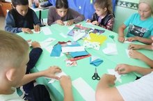 Сегодня в пришкольном лагере "Звёздный" "День творчества".Мальчишки и девчëнки вместе с воспитателями учились складывать из бумаги различные фигурки.