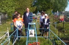 Ученики 8 класса и учитель чувашского языка и литературы Петров В.В. почтили память Н.И. Плониша, возложив цветы на могилу художника.