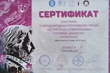 Ученица 5 класса Петрова Татьяна принимает участие в VI Международных Тургеневских чтениях