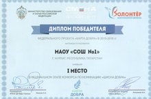 Наша школа стала победителем Федерального проекта «КАРТА ДОБРА» в 2015-2016гг. в номинации «ШКОЛА ДОБРА»! Всех поздравляем!!!