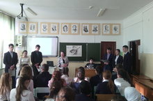 Среди учеников восьмых классов прошел КВН «Любители русского языка». Команды соревновались в знании правил русского языка, фразеологизмов, поговорок и пословиц о языке. Зрители угадывали литературных героев, решали кроссворды.