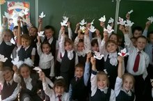 В знак памяти жертв Беслана обучающиеся школы выпустили в небо белые шары со словами «Мы за мир!». Впервые белые шары выпустили в небо одноклассники погибших детей в Беслане. Сегодня эту акцию поддерживают во всей стране.