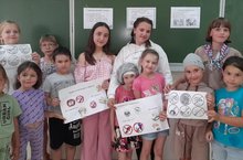 День начался с утренней зарядки.После завтрака ребят ожидало очень увлекательное,спортивное мероприятие.Наш пришкольный лагерь"Солнышко" посетила Начальник отдела профилактики территориального управления ГБУ"Безопасность дорожного движения"-Гималетдинова Г.С.Под ее руководством была организована спортивная битва среди четырех отрядов.Ребята на время должны были пройти препятствия и выполнять задания на велосипедах.Самыми быстрыми и ловкими оказался 2 отряд.Все участники были награждены памятными подарками.Для болельщиков была отдельная программа,они проходили тест правилам дорожного движения и собирали пазлы по дорожным знакам.После вкусного обеда ребята участвовали в экологической акции "Планета чистая моя".Далее педагоги-воспитатели подготовили мероприятие "Знатоки экологических знаков",где дети рисовали самостоятельно экологические знаки,такие как:костер в лесу,береги природу,не стоит трогать зверей и многое другое. -