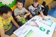 Утро начинается с зарядки.Ребята зарядились позитивом на весь предстоящий день.После завтрака 2 отряда посетили городскую библиотеку,а другие 2 отряда направились в ЦДТ "Килэчэк",где их ждал увлекательный мастер-класс"Путешествие в мир сказок Корнея Чуковского" и интеллектуальная игра "Марафон сказок". Дети отгадывали загадки про сказочных героев,играли в игру"Доскажи словечко",зачитывали отрывки из сказок,создавали мультипликацию на сюжет по сказке "Колобок"а по окончанию мероприятия один из ребят был выбран самым активным знатоком по сказкам.Время подошло к обеду????После вкусного обеда все отряды писали письма и рисовали рисунки "Неизвестному солдату" которые будут переданы солдатам на фронты Донбасса представителями Общественной Организации Ветеранов"Боевое Братство"г.Нурлат.Также педагогами-воспитателями была проведена литературная викторина "В гостях у А.С.Пушкина".Ну а перед уходом домой мы устроили небольшую мастерскую,где из природных материалов ребята смастерили целую экспозицию "Лебединое озеро". -