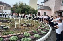 В память жертв Беслана, которые все три дня, находясь в заточении, не могли выпить и капли воды, участники акции подходили к чаше с водой, набирали в ладони немного воды и с пожеланием светлой памяти всем безвинно погибшим поили цветы, которые растут на территории школы.