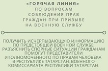 02 апреля 2021 года Уполномоченный по правам человека совместно с Военным комиссариатом Республики Татарстан проводит «горячую линию» по вопросам соблюдения прав граждан при призыве на военную службу.