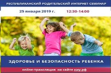 25 января 2019 года 12.30-14.30 состоится Республиканский родительский интернет-семинар "Здоровье и безопасность ребенка". Онлайн трансляция на сайте киу.рф Вопросы принимаются по адресу: roditelirt@mail.ru или через форму на сайте или по адресу roditelirt@mail.ru.