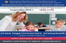 14.12.2018 16.00 сәгатьтән 17.30 сәгатькә кадәр "Педагогик мөнәсәбәтләр этикасы"республика ата-аналар интернет-җыелышы узачак.