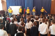 28 сентября в рамках Осенней недели добра старшеклассниками проведена БОЛЬШАЯ ЗАРЯДКА для учащихся начальных классов классов.