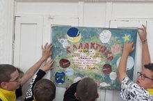 Сегодня в первый день лагерной смены 1 отряд "Галактика" успел оформить отрядной уголок. Было решено, что каждый из детей приклеит свой космический объект с именем.