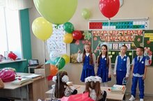 Ученики 11 класса, совместно с советником директора по воспитанию, пожелали успехов в учебе и напутствующими словами вручили самолетики учащимся первых классов. -