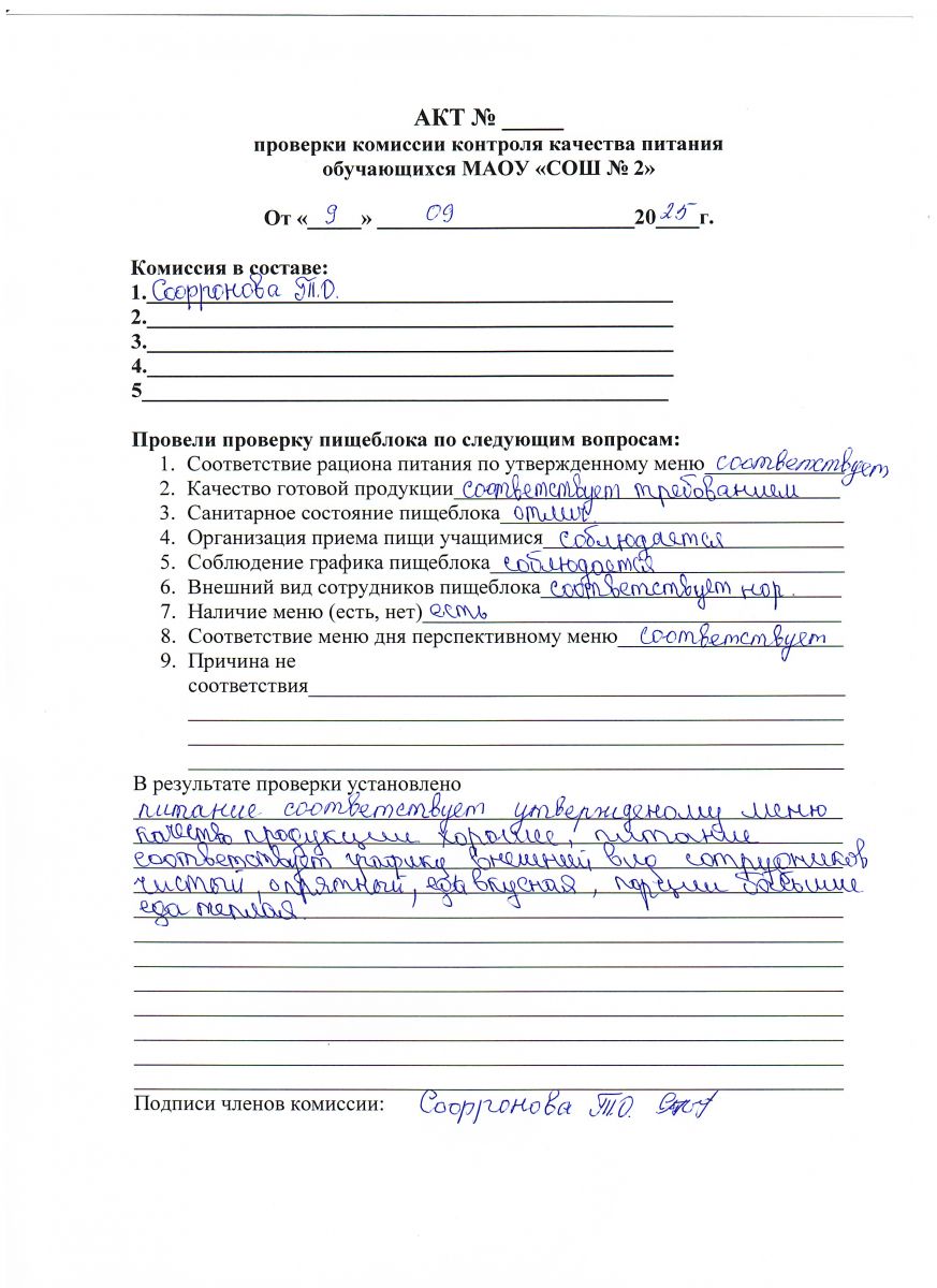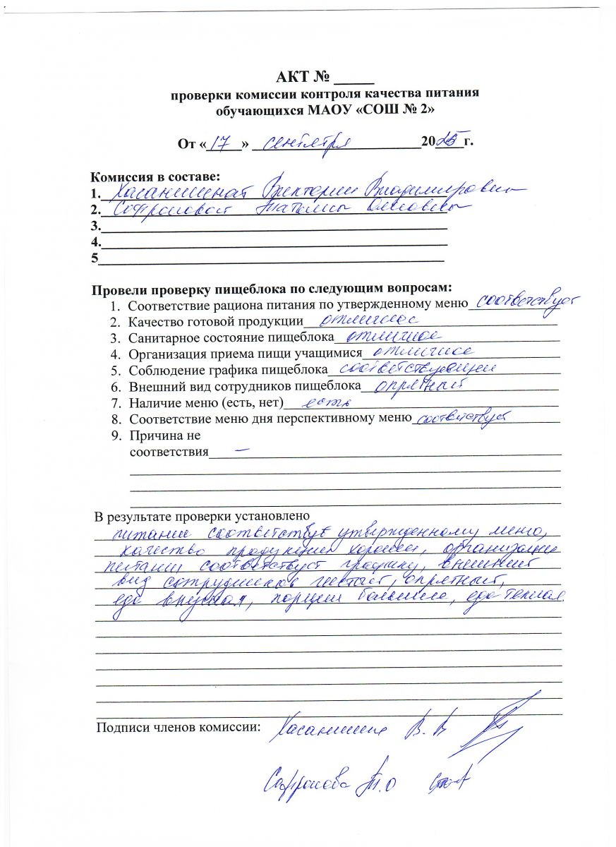 Акт проверки комиссии контроля качества питания 17.09.2024