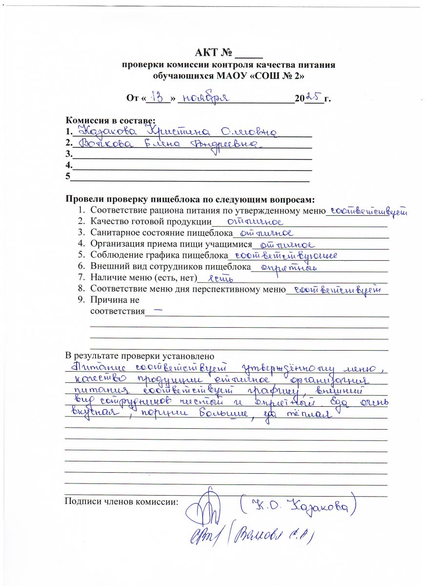 Акт проверки комиссии контроля качества питания от 13.11.2025