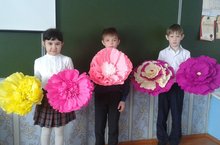 Ученики начальных классов помогают в оформлении школы к праздникам