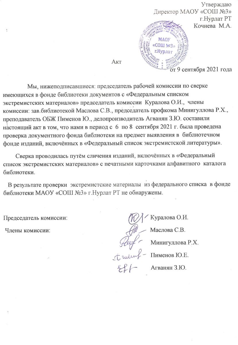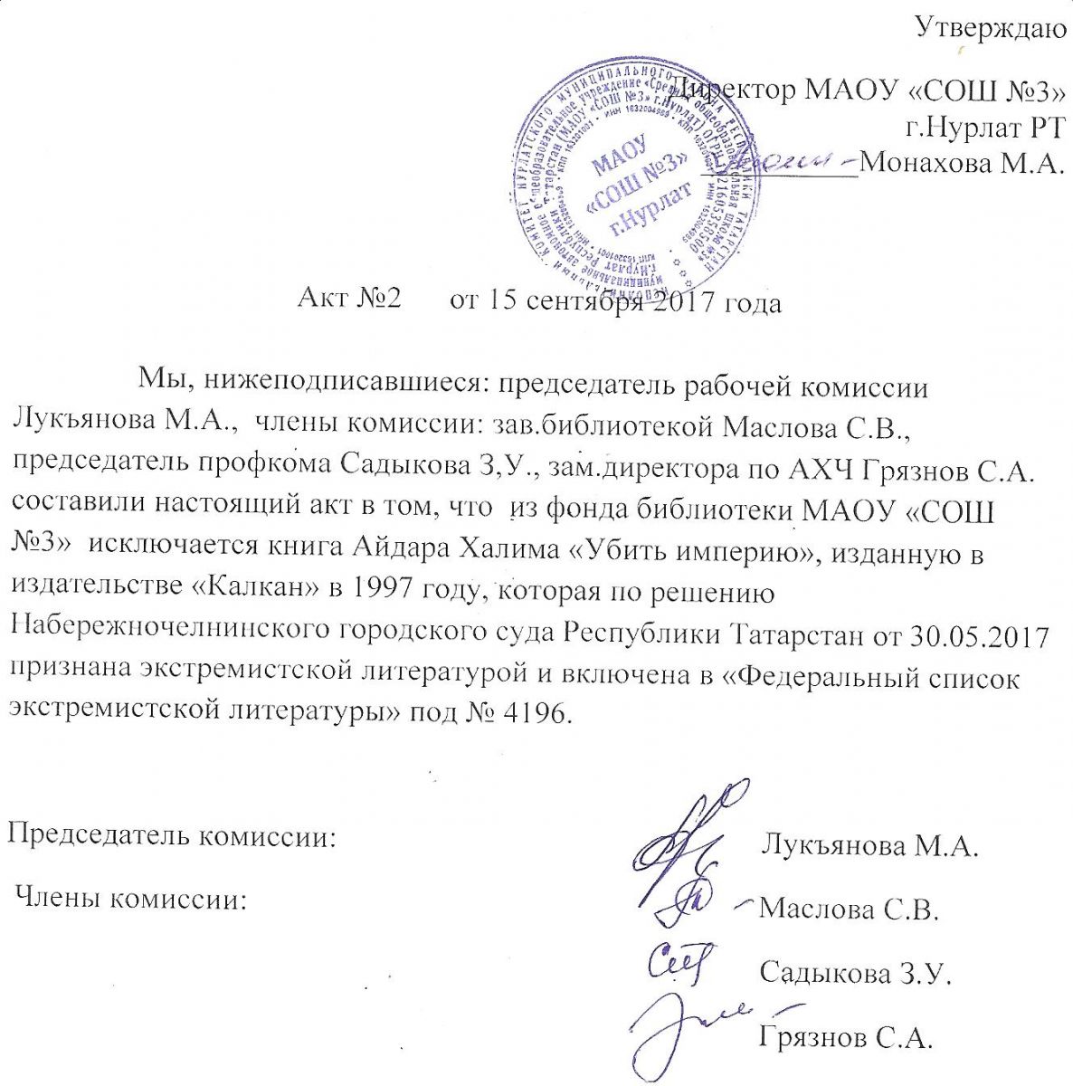 Акт по сверке имеющихся в фонде библиотеки документов с "Федеральным списком экстремистских материалов.jpg