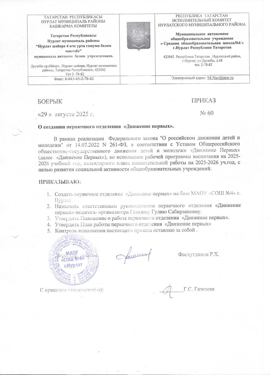 Муниципальное автономное общеобразовательное учреждение «Средняя общеобразовательная школа №4» г.Нурлат Республики Татарстан/Татарстан Республикасы Нурлат шәһәре " 4-нче урта гомуми белем мәктәбе" гомуми белем автоном муниципаль учреждениесе