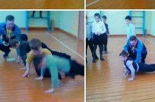 Ребята состязались в прыжках на скакалке, отжиманиях и приседании.
