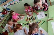 Ребята помладше рисовали и раскрашивали костюмы разных народов, в отрядных местах обновились выставки рисунков
