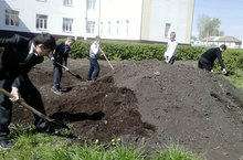 Для проведения опыта учителя биологии и учеников на территорию школы также был завезен перегной,который они раскидали по грядкам. Он поможет всходам расти быстрее и лучше.