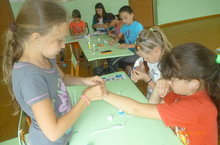 Третий день пришкольного оздоровительного лагеря запомнился его подопечным конкурсом рисунков на асфальте,спортивными эстафетами и мастер-классом,который дала педагог из Детского юношеского центра.Девочки сами изготовили для себя браслеты из бумаги.Также сегодня были дорисованы творческие уголки каждого отряда.