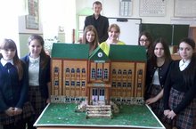 Учащиеся 10-11 классов под руководством Битулина Е.А. и Мустафиной Р.С. две недели трудились над созданием ж/д вокзала.Первый ж/д вокзал появился в нашем городе в 1913 году,а возведение нового здания было начато в 2001 году и закончено в 2003 .Именно это новое здание ж/д вокзала и постарались изобразить учащиеся.