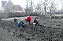 Наконец -то выглянуло солнышко. Опять закипела бурная работа на школьном участке. На помощь ребятам вышли работники тех.персонала. Идет посадка лука-севка. Это небольшие лучины, размером 1,5-2 см в диаметре. Конечно, репчатый лук можно вырастить и из семян. Для этого семена лука высаживают первый год, получая лук-севок в виде урожая. И на второй год сажают уже севок. Но, к сожалению, хранить лук-севок в наших условиях очень сложно. Для этого требуется неукоснительное соблюдение температурного и влажностного режима. Именно поэтому выращивать лук-репку предпочтительнее из небольших луковиц — севка.