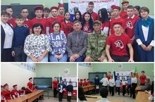 Ученики 8,6,5классов подготовили номера художественной самодеятельности. Ребята пели,танцевали под патриотические песни,а ученик 9 класса Кузнецов Юрий показал навыки сборки и разборки автамата "Калашникова".
