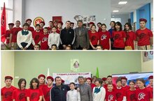 Ученики 8,6,5классов подготовили номера художественной самодеятельности. Ребята пели,танцевали под патриотические песни,а ученик 9 класса Захаров Кирилл показал навыки сборки и разборки автамата "Калашникова".