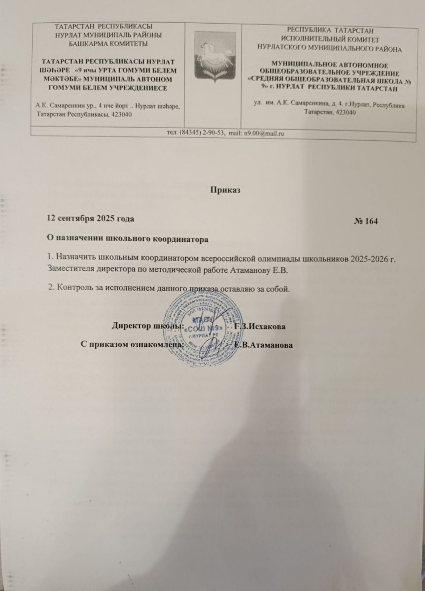 НМР Приказ о проведении школьного этапа олимпиад 2025-2026