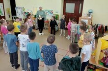 Нурлат шәһәре 9нчы урта мәктәбенен башлангыч сыйныф укытучысы Хуҗиәхмәтова Гөлия Рифкат кызы " Буратино" балалар бакчасынын әзерлек төркемендә тәрбияләнүчеләре белән «Кар бабайга кунакка» дигән темага шөгыль уздырды. Шөгыльнен максаты: кышкы күнеллелеккә карата карашларны ныгыту, бер - беренә ярдәм итү хисләрен тәрбияләү. Балалар кыш көне чанада, чангыда, тимераякта шуулары турында сөйләделәр. Ин күнелле уеннарынын берсе "Кар өеме"н уйнап күнел ачтылар./ Учитель начальных классов МАОУ " СОШ 9" Хузяхметова Гулия Рифкатовна с воспитанниками подготовительной группы д/ с "Буратино" провела занятие на тему: " В гости к Снеговику". Цель занятия: закрепить представления о зимних развлечениях, воспитание чувств взаимопомощи. Дети рассказывали о зимних играх( катание на санках, лыжах и коньках). Сыграли самую любимую игру " Снежный ком".