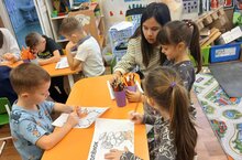 Сегодня обучающиеся 8а психолого - педагогического класса посетили МБДОУ "Теремок". Они с воспитанниками провели занятие на тему " Осенние краски"