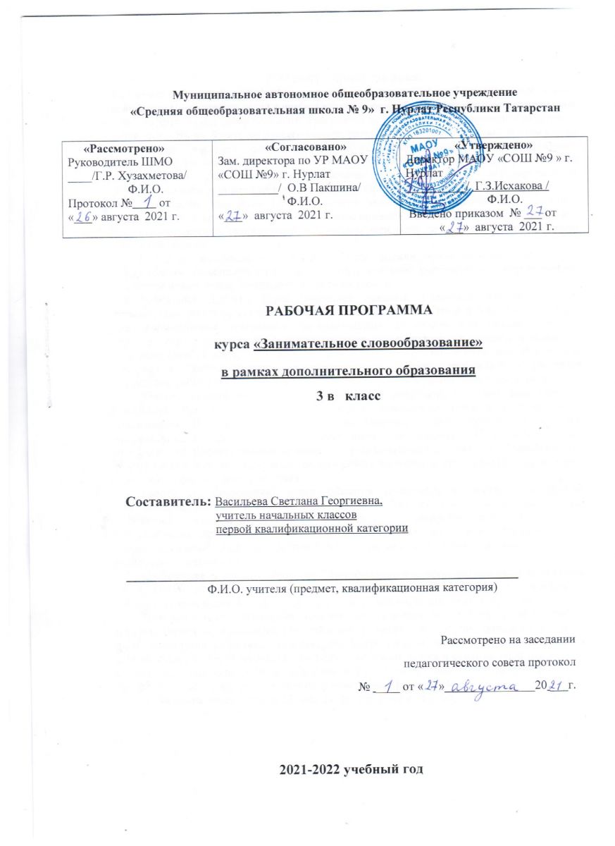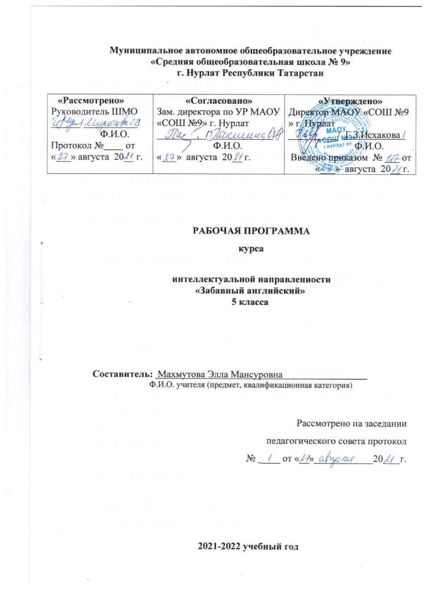 Муниципальное автономное общеобразовательное учреждение «Средняя общеобразовательная школа №9" г. Нурлат Республики Татарстан/Татарстан Республикасы Нурлат шәһәре «9 нчы урта гомуми белем мәктәбе» муниципаль автоном гомуми белем учреждениесе