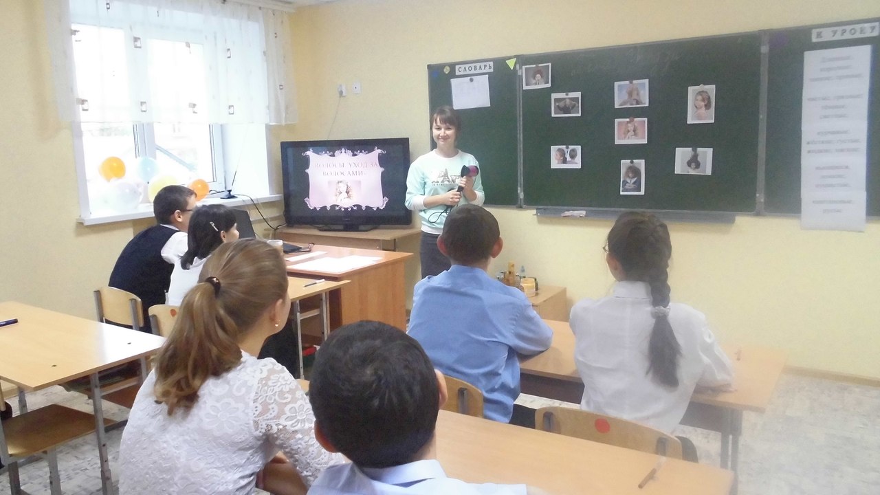 Опубликовано: 12.10.201612 октября воспитатель 8А класса Сулейманова А.Р. провела открытое занятие по домоводству на тему:" Уход за волосами". фото,фото