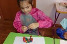Заниматься рисованием и аппликацией - это не только работа руками, хотя и это очень важно для развития мелкой моторики рук детей, но ещё и стимуляция развития речи — дети не только учатся формулировать вопросы, связанные с выполнением поделки, но и постигают основы составления связных описаний аппликации. Также в работу мы включаем разучивание связанных по теме четверостишие и загадки, что помогает создать условия для обогащения словаря детей, упражнять детей в правильном произношении слов.