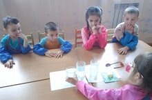 Сегодня в группе прошел «День экспериментов с водой». Как настоящие учёные, ребята проводили опыт.