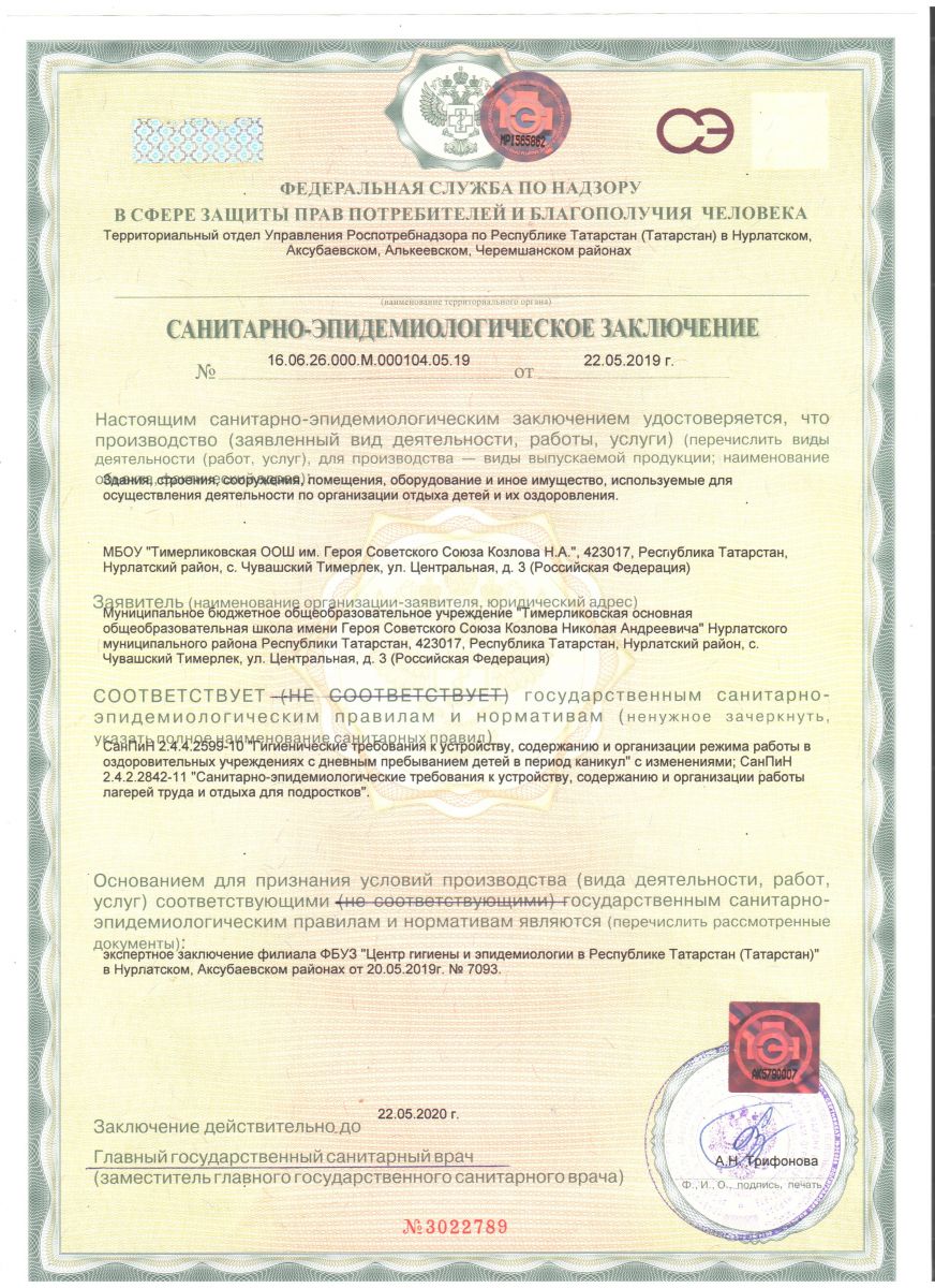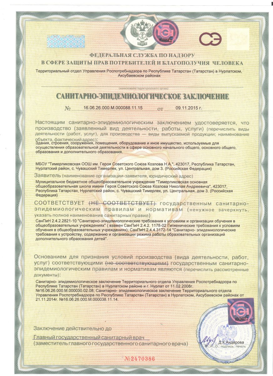 Санитарно-эпидемиологическое заключение/Санитар-эпидемиологик бәяләмә