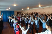 В школе прошел день здоровья. Утренний флешмоб ученики провели совместно с учителями. В начальных классах прошли веселые старты