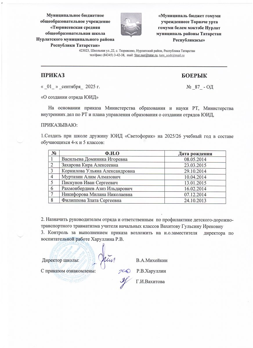 | Адрес: | 423023, Республика Татарстан, Нурлатский район, с. Тюрнясево, ул.Школьная, дом 22 |