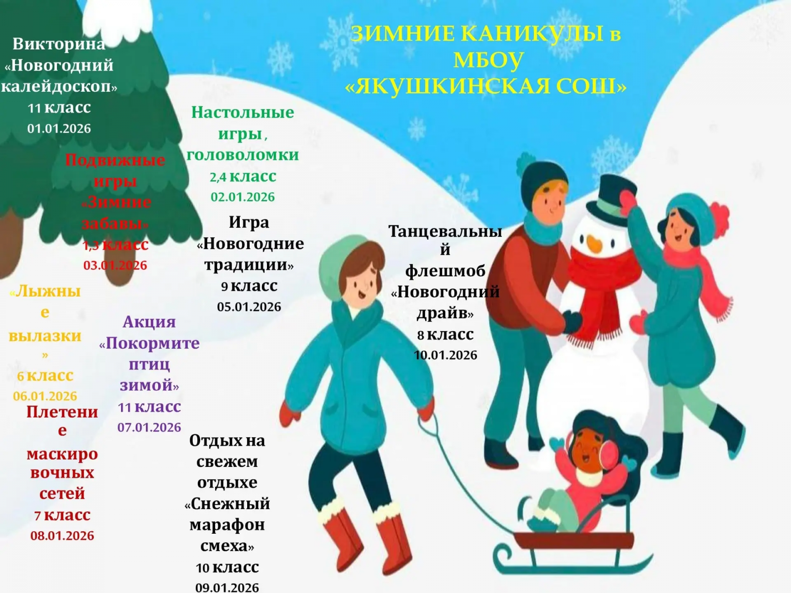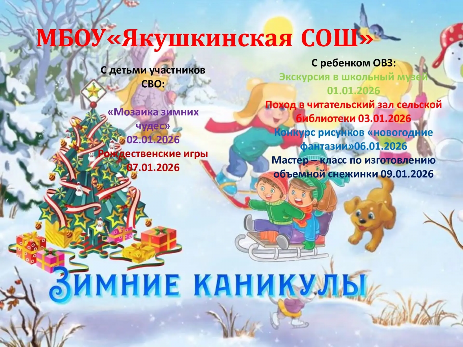 Зимние каникулы в МБОУ "Яушкинская СОШ" 24.12.2025