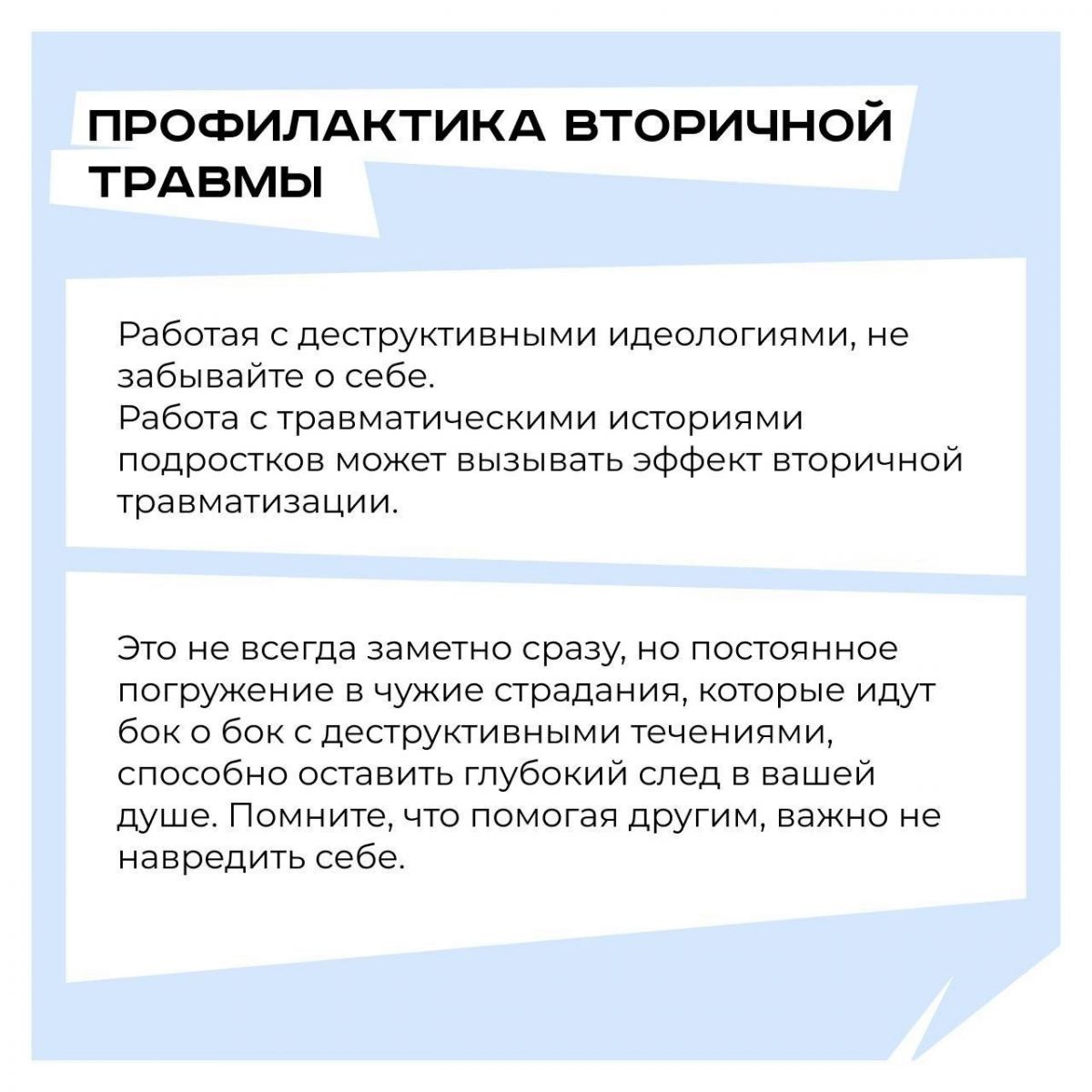 Причины интереса , Профилактика вторичной травмы. , Не все деструктивно.