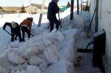 В МБОУ "Якушкинская СОШ и филиалах провели субботник. Учителя и обучающиеся очистили снег по периметру школы.