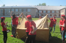 В день пионерии юнармейцы состязались в игре "Зарница".