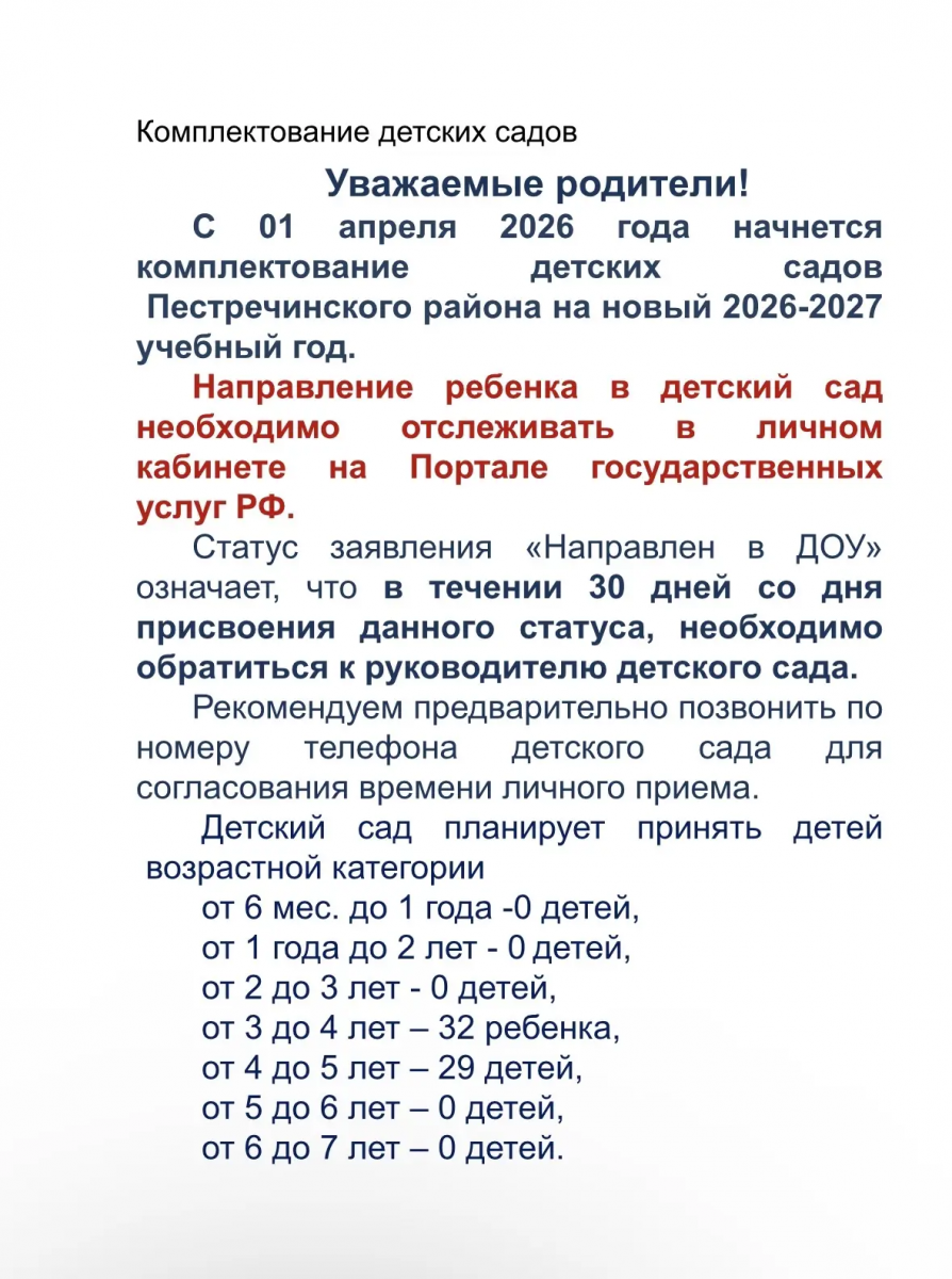 Комплектование детских садов