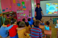Безнең балалар бакчасында, гадәттәгечә, Россия көне алдыннан, чаралар уза. Шулай итеп, тәрбияләнүчеләр белән «Безнең Ватан – Россия» темасына әңгәмә үткәрелде, аның барышында балалар «Ватан», «флаг», «герб» төшенчәләре белән таныштылар, аннары Россия флагын игътибар белән карадылар һәм «Россия флагы»аппликациясен башкардылар. Дәрес ахырында балаларның иҗади эшләре күргәзмәсе оештырылды. Дәрес бик кызыклы, танып-белү һәм нәтиҗәле узды.