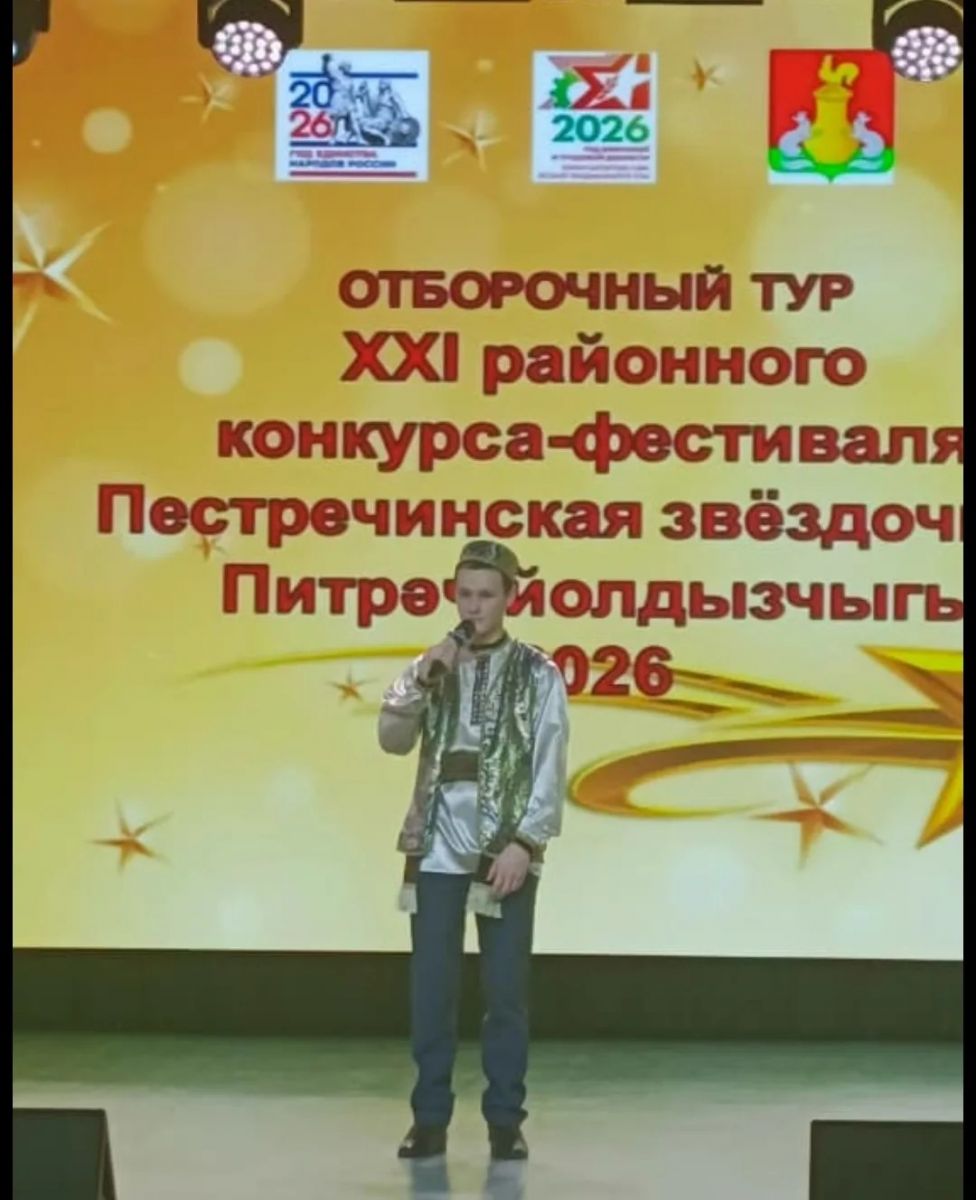 Ученик 8 класса Файзрахманов Азамат принял участие в отборочном туре XXI районного конкурса- фестиваля "Пестречинская звездочка" 2026