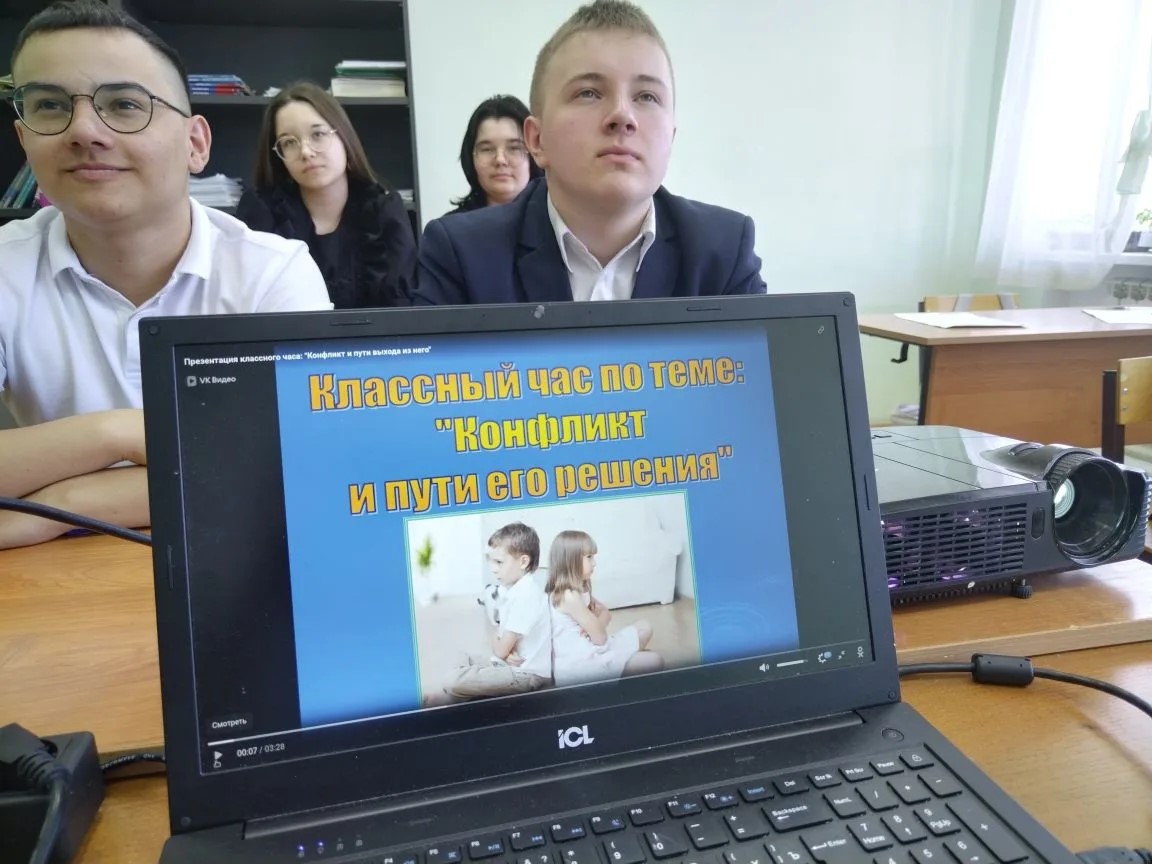 В рамках «Недели психологии» проводятся мероприятия, участниками которых являются обучающиеся и их родители (законные представители), а также педагоги школы. Классный час на тему " Конфликт и пути его решения" в 9 классе.