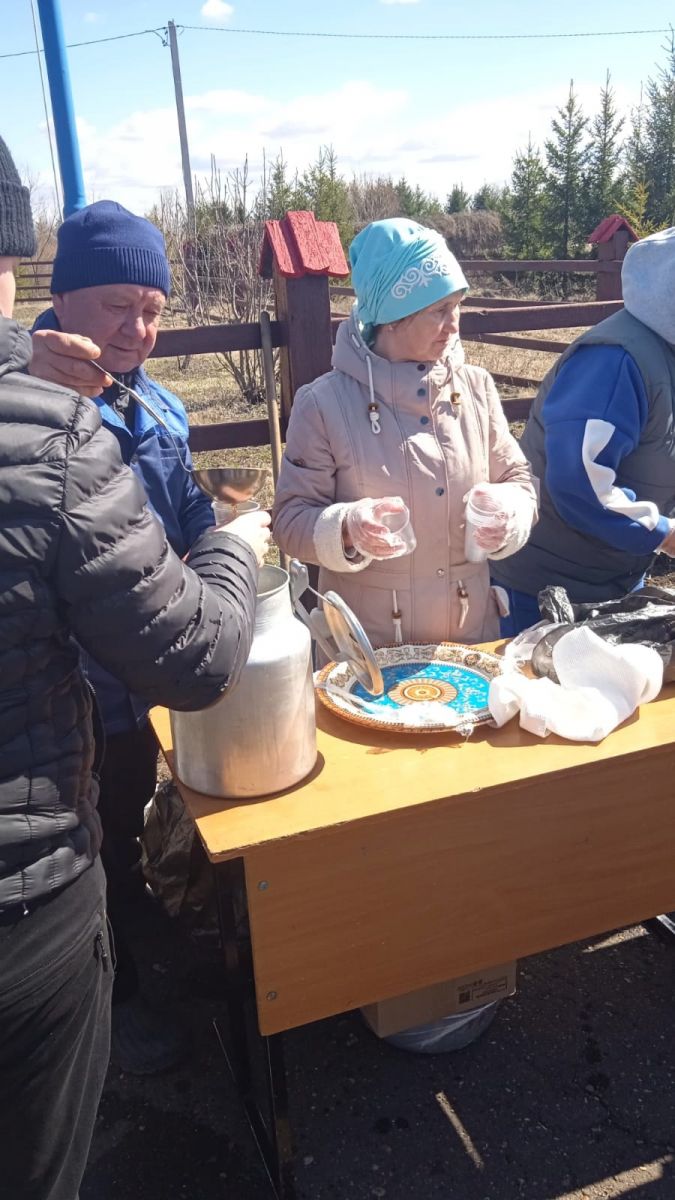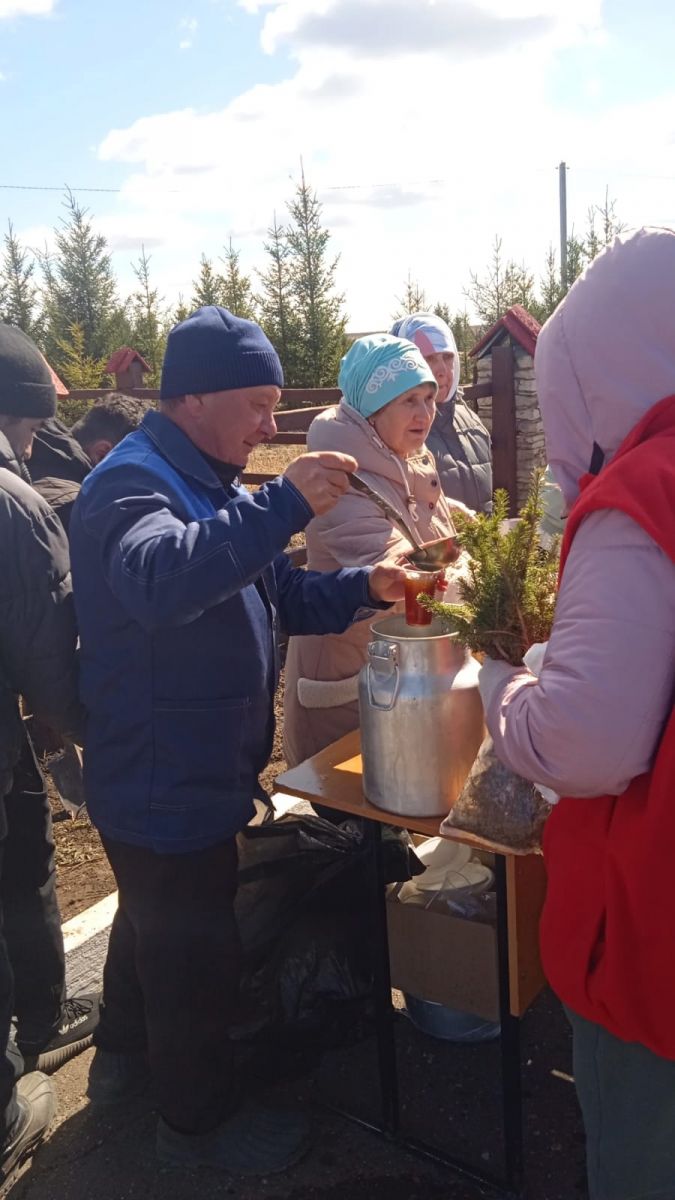 В селе Альвидино жители Пестречинского района собрались на акцию «Сад Памяти», приуроченную к 80-летию Победы в Великой Отечественной войне. В ней приняли участие и сотрудник нашей школы.Угощали всех блинами и горячим чаем.
