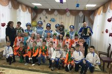 Месячник безопасности в детском саду начался с посещения сотрудника ГИБДД Егорова П. и беседой с детьми о правилах поведения детей на дорогах.