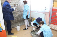 В рамках декады предметов трудового обучения, учитель труда Сурикова В.В. провела урок штукатурно-малярного дела "Выполнение операций простой штукатурки"