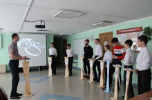 Учитель трудового обучения Азизов И.Н. провел урок с 5 классом "Выполнение отверстий под шурупы на деталях полочки для цветов". В школе проходит декада предметов трудового обучения.